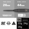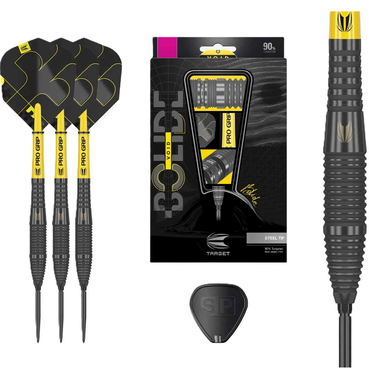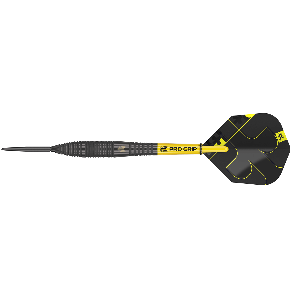 Med et fantastisk svart titan belegg for et ekstra lag med holdbarhet og forbedret estetikk, gir det sandblåste radiale groove-grepet større kontroll, noe som gir deg tryggheten til å kaste med høy presisjon. Konstruert for presisjon, kompletteres pilene av 90 % tungstein med de populære Pro Grip-bakstykkene og Bolide Void-utgave nr. 6-flights, og avsluttes med Targets patenterte 26 mm svarte Swiss spisser for en fullstendig utskiftbar pil.