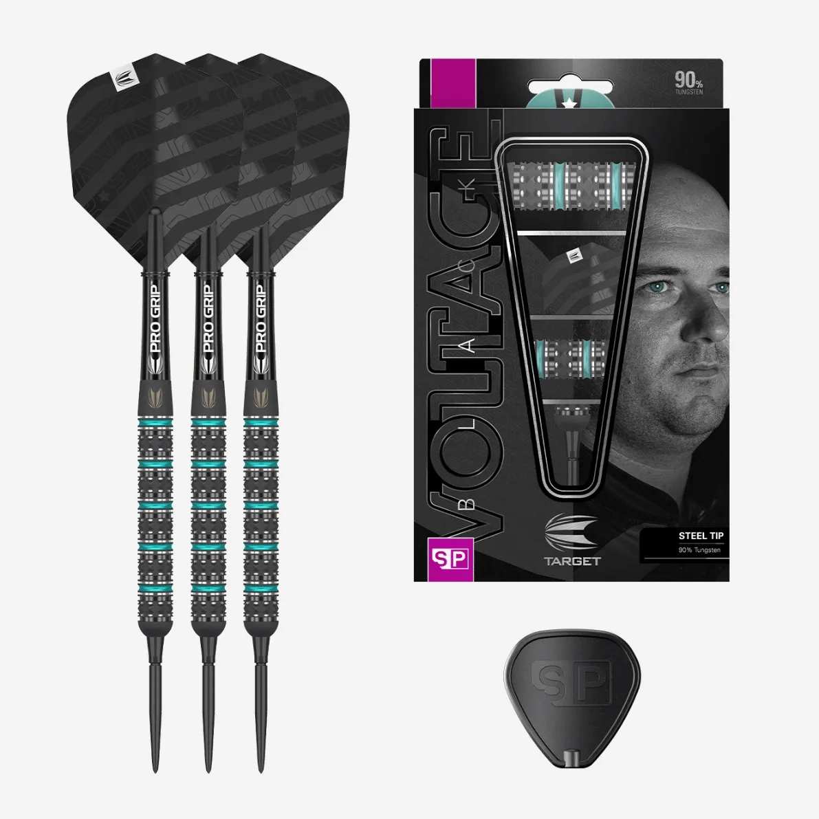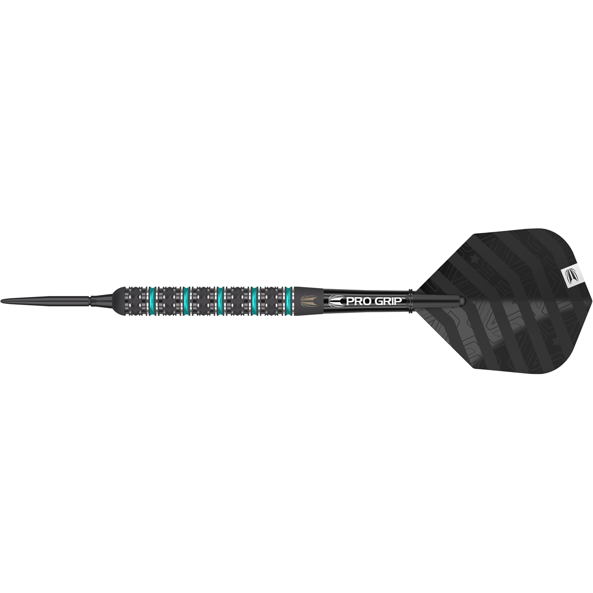 Det svarte PVD-belagte pilen er deretter ferdigbehandlet med Target Pro Grip og Rob Cross eksklusive Black Edition-flights.