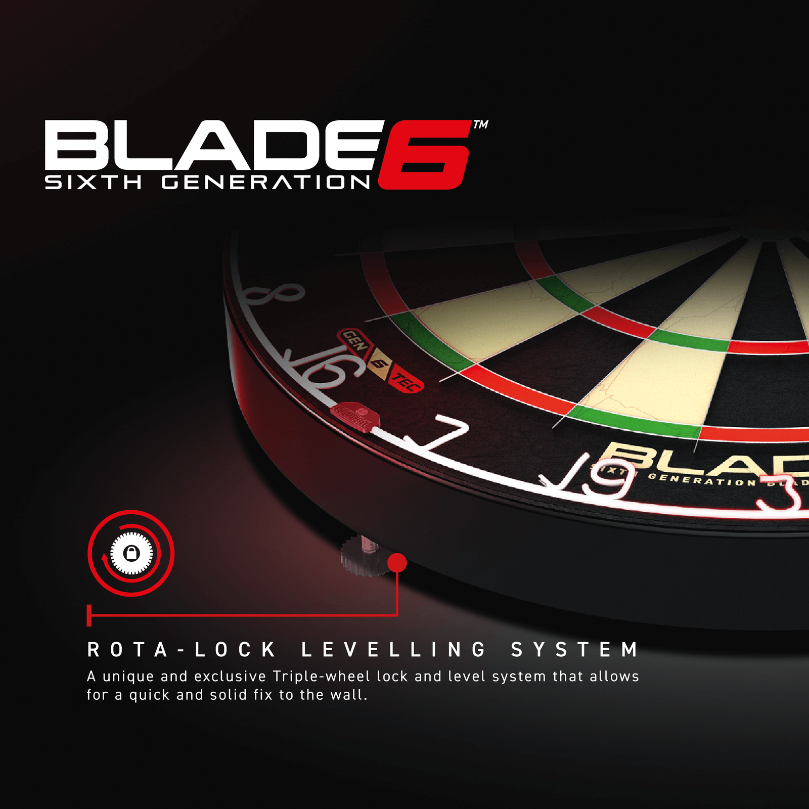Det ultimate innen dartskivekonstruksjon, som gir optimal fibertetthet, uovertruffen dartretensjon og maksimal poengsum. Ferdig med helt ny grafikk, og verdens første laserskåret antirefleksring for den ultimate spilleopplevelsen. Blades banebrytende design har den nyeste ‘Density Control™’-ledningen for optimal fibertetthet og forbedret piloppbevaring i dobbel-, diskant- og bullseye-sonene, for maksimal scoringskraft. Den ultratynne 60° vinklede ledningen avleder piler inn i scoringsområdet for absolutt minimalt med sprett. Den fullstendig herdede bullseye og ytre oksen, med ‘Density Control™’-wire, er nå 25 % tynnere. Utstyrt med det lettjusterte Rota-Lock-monteringssystemet og inkludert Spirit Master-nivelleringsverktøyet, passer Blade 6 Triple Core til enhver vegg slik at du kan begynne å spille i løpet av minutter. Laget av den fineste østafrikanske sisal for de mest krevende spillere og miljøer. Blade 6 Triple Core er konstruert etter offisielle spesifikasjoner fra World Darts Federation og er anerkjent av verdens ledende fagfolk. Blade 6 Triple Core er et stort sprang for dartboarddesign, og er kjennetegnet for Winmaus 75-årige dartboard-arv.