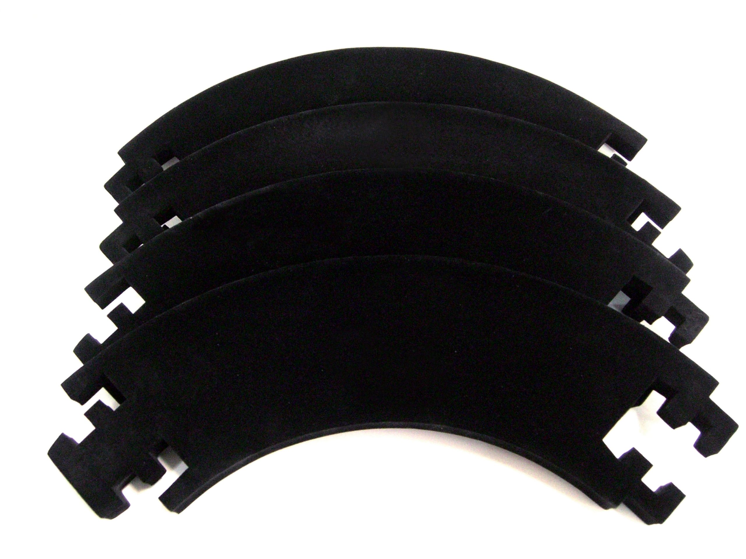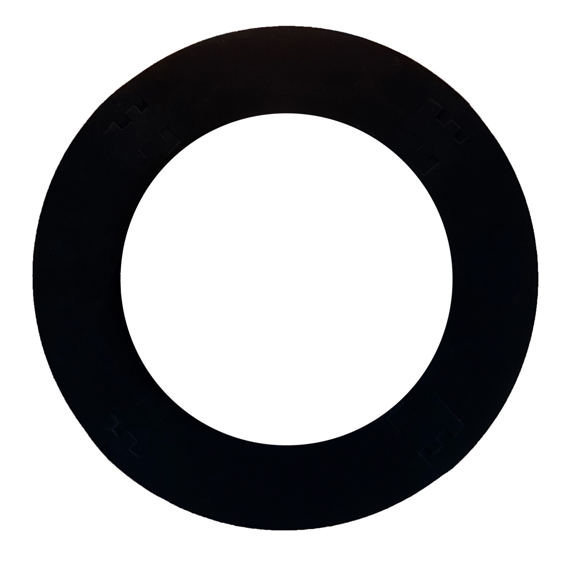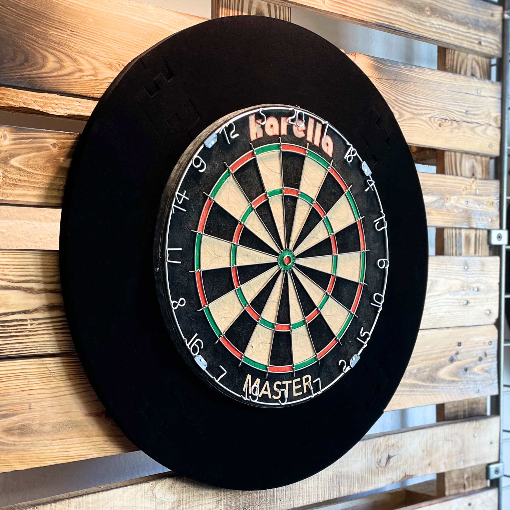 Karellas 4-delte surround er en fangst ring som enkelt festes til dart tavlen. Fangst ringen absorberer lydløst alle mistede piler som ellers ville landet rett utenfor brettet. Dette betyr at omrammingen ikke bare beskytter veggen, men også gulvet mot feilplasserte piler, samt selve pilen. Den omtrent 13 cm brede vegg beskytteren er laget av EVA-plast. Dette antirefleks materialet har ideelle egenskaper som sikrer at pilene holder seg godt på plass, ikke trenger inn i veggen, og også kan tas av igjen. Den ekstremt slitesterke og stabile skum omrammingen består av 4 deler som raskt og enkelt kan settes sammen. Dart bakplaten er identisk på begge sider, noe som gjør at den kan brukes på begge sider og øker levetiden betydelig. Med en indre diameter på omtrent 45 cm er omrammingen universelt egnet for alle turneringsdarttavler. Den ytre diameteren er omtrent 71 cm.