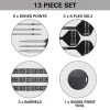Settet kompletteres av K-Flex No.2 short (19 mm) – integrerte flights/shafts med Dobey-profilering. Éndelskonstruksjonen holder stabil 90° vinkel for forutsigbar flybane og jevn grouping.
