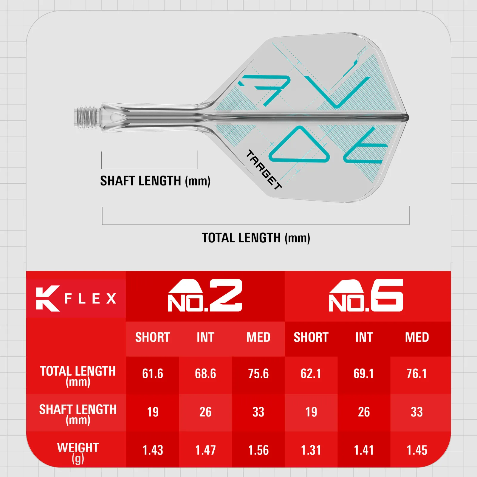 K-Flex er konstruert for å redusere avvik og opprettholde tette grupperinger, med en fast 90-graders flightvinkel som gir optimal aerodynamikk. Med universell 2BA-gjenge passer systemet sømløst til alle standard 2BA-barrels og gir stabile kast hver gang.