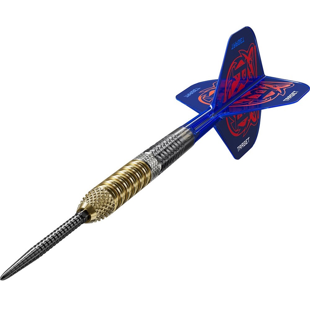 Med 95 % tungsten som base gir barrel-designet høy tetthet og perfekt balanse. Den er utstyrt med diamantmønstre i grepet, sømløst kombinert med radiale spor for en ren og presis følelse. En eksklusiv gullfarget titan-nitrid-belegg løfter både utseendet og slitestyrken. På baksiden gir et aksialfrest grep ekstra kontroll for spillere som foretrekker et bakhåndsgrep.