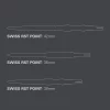 Swiss Storm RST Points kombinerer den patenterte Swiss Point-teknologien med den populære Storm-profilen. Designet gjør at spissen ligger helt i flukt med barrel, noe som gir et sømløst uttrykk og en behagelig følelse i kastet. Spissene har en glatt front og en unikt formet bakdel bak bruddpunktet, avsluttet med radiale spor – ideelt for spillere som foretrekker et frontgrep.