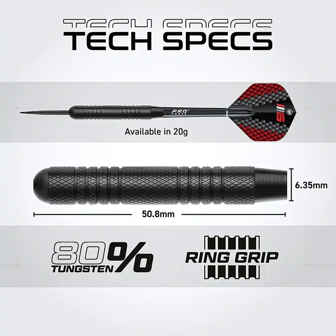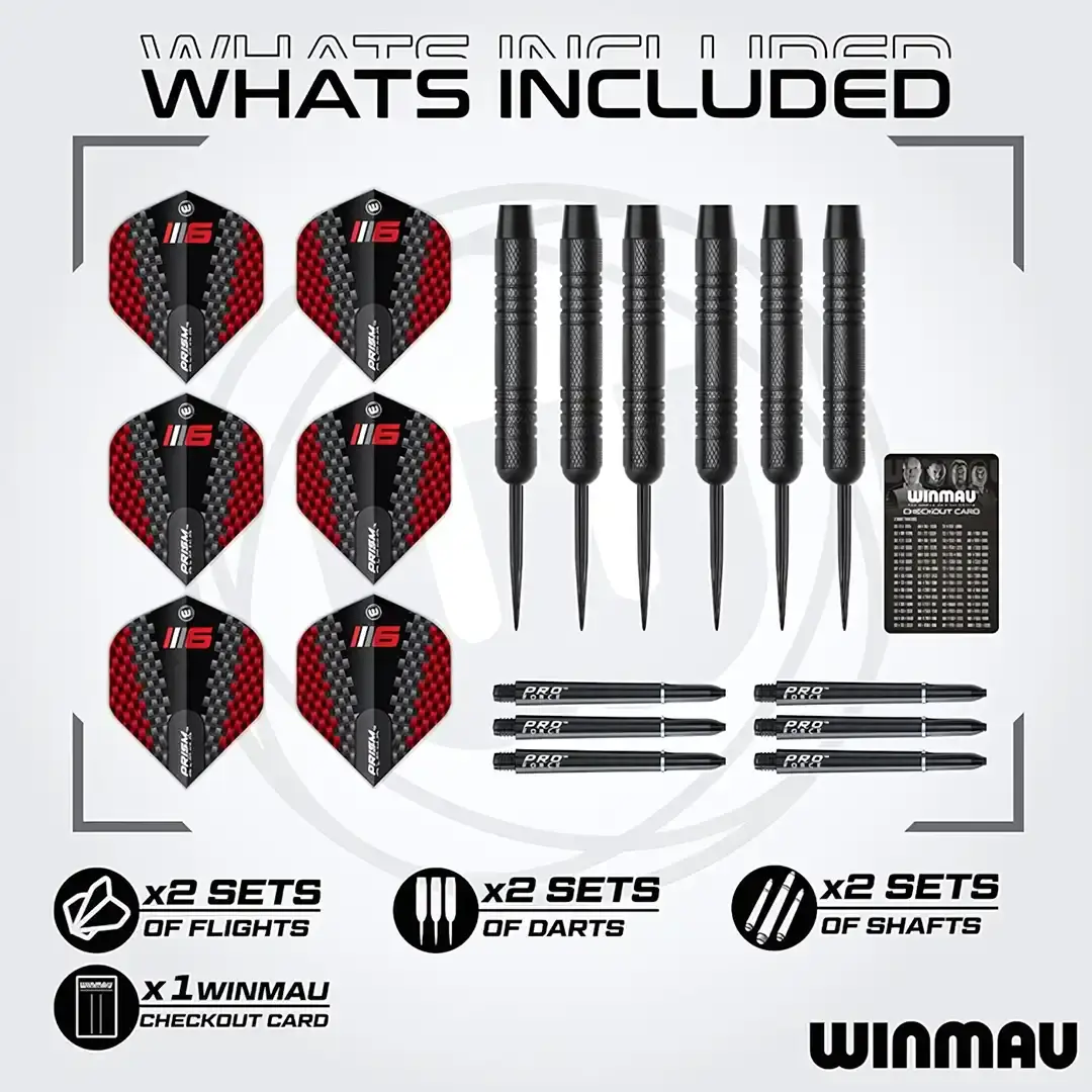 De medfølgende Winmau steel darts er laget av solide materialer med presis utførelse for jevn flukt, godt grep og høy treffsikkerhet. Aerodynamisk utforming og slitesterke ståltupper gir god kontroll og bidrar til færre uheldige sprett.