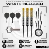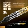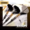 Exion er inspirert av linjen mellom tre lyssterke stjerner: en svart–gull–svart komposisjon der det gyldne midtpartiet symboliserer konstellasjonens kjerne, innrammet av to mørkere segmenter for balanse og dybde. Dette er ikke bare estetikk – det er funksjon. Den buttress-freste “milled block”-strukturen skaper tydelige, gjentakbare grepzoner langs hele kroppen, slik at du får et trygt tak, presis akselerasjon og ren release. Den svarte og gyldne duo-finishen gir samtidig et skarpt, proft uttrykk og bedre synlighet ved oche.